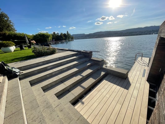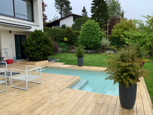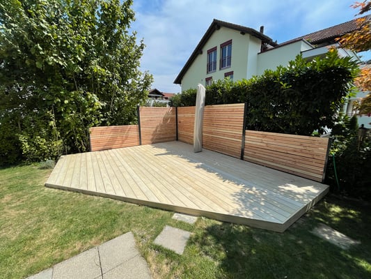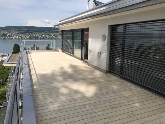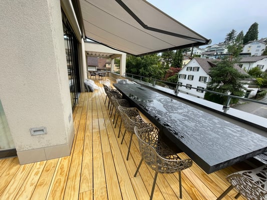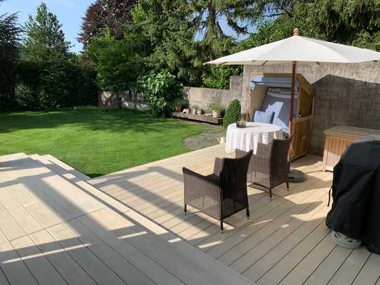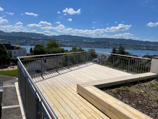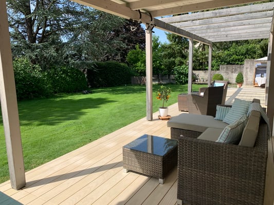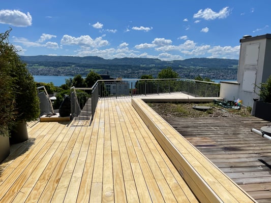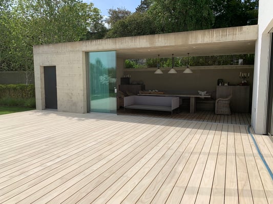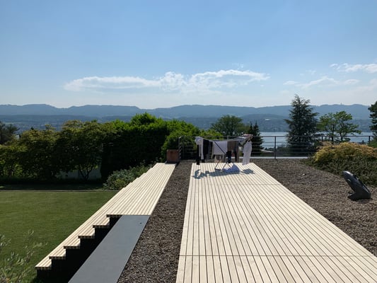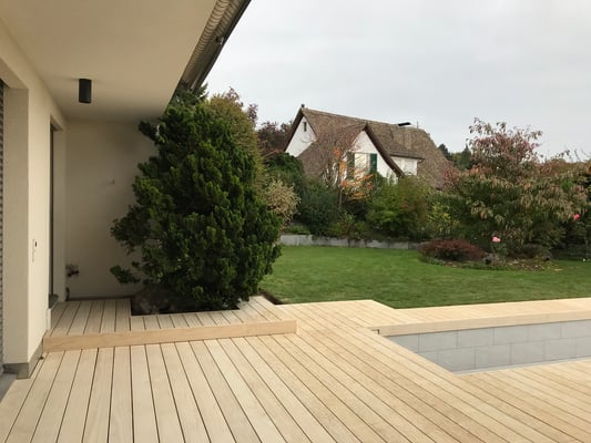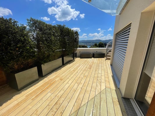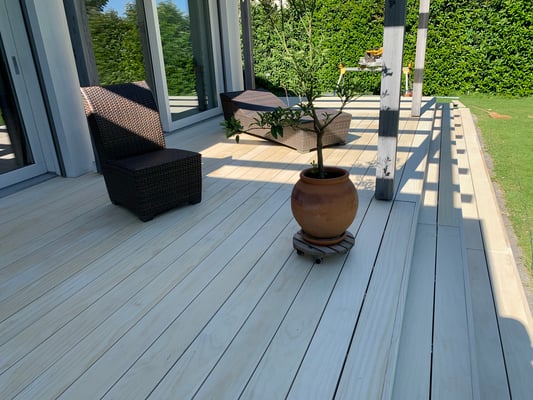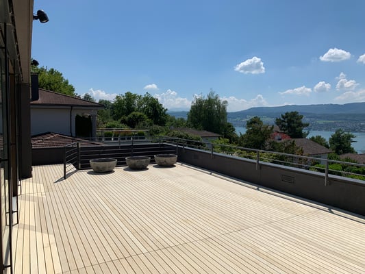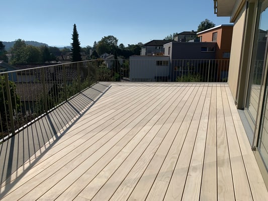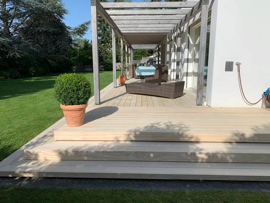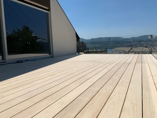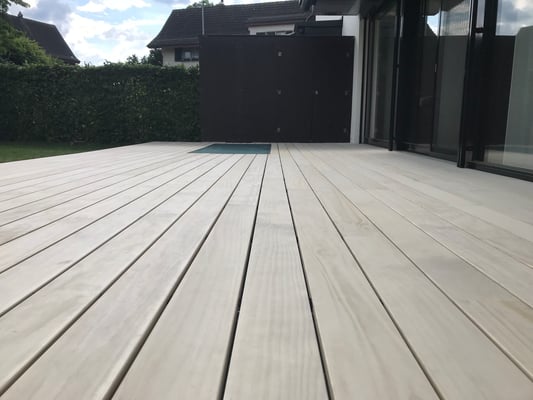 Accoya Terrassendielen sind nicht nur robust, sondern auch ästhetisch ansprechend. Sie haben eine attraktive, gleichmäßige Maserung und Farbe, die sich im Laufe der Zeit leicht verändert und ein schönes silbernes Patina entwickelt.