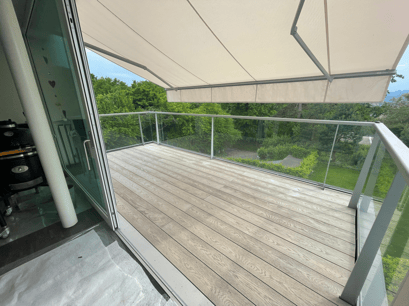 Die Deckschicht besteht aus Lastane® – einem sehr widerstandsfähigem Material, welches durch seine ungewöhnlich schöne Holzoptik überzeugt. Die Oberfläche der Millboard® Decks ist rutschfest, resistent gegen Algen, Pilze und Insektenbefall. Zudem ist sie nahezu wartungsfrei, UV- und Wetterbeständig, kratzfest und splitterfrei.